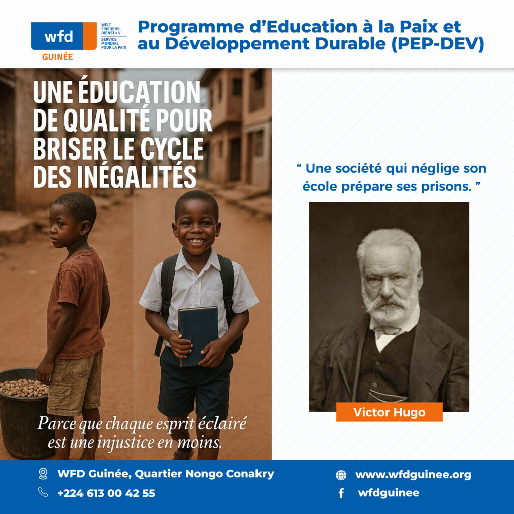 Une nation qui éclaire ses enfants avec le savoir les protège de l’ombre de la misère, de la peur et de l’exclusion. Offrir une éducation humaine, créative, égalitaire, c’est construire une société plus juste, plus forte, et en paix.